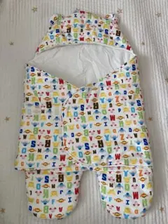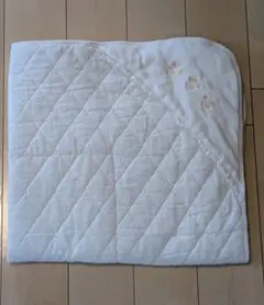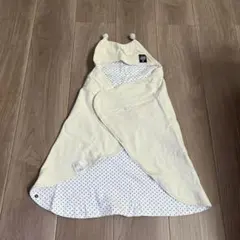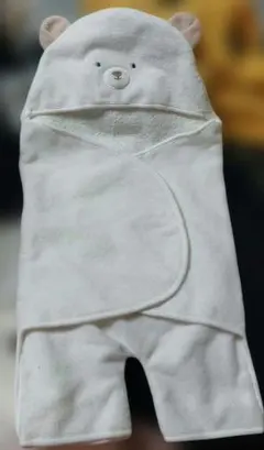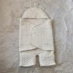 くま耳のフード付き、アイボリーのキルティングおくるみ。