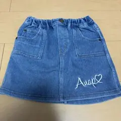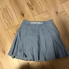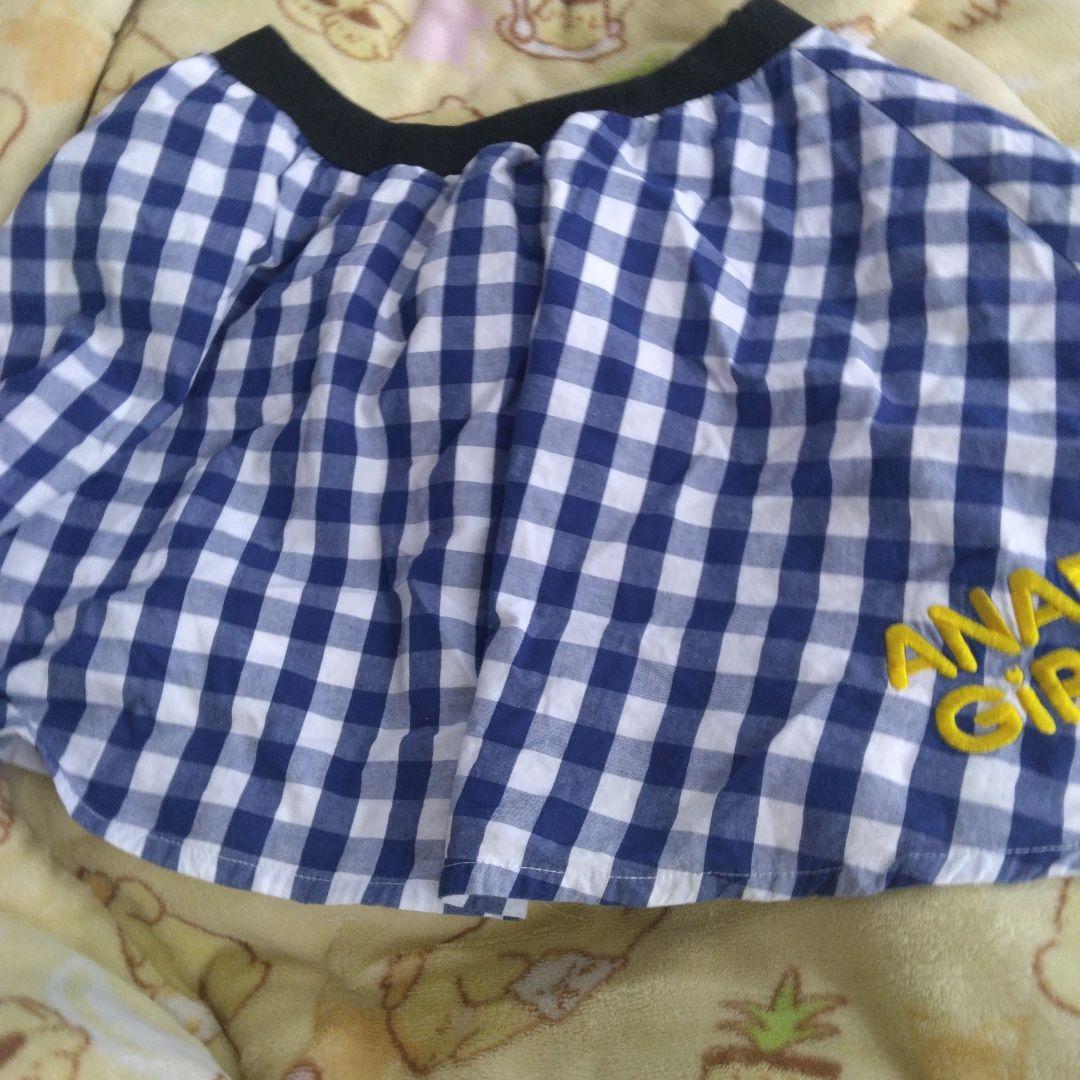 ネイビーとホワイトのチェック柄スカート、ANAP GIRLの刺繍ロゴ付き。