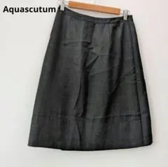アクアスキュータムのチェック柄のフレアスカート、ウール素材でシワになりにくい快適な着心地。