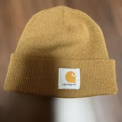 マスタードカラーのニット帽、折り返しデザインでスタイリッシュ。