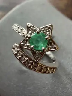 11号 グリーンエメラルド 発色抜群 ダイヤモンド Dカラー ゴールドリング