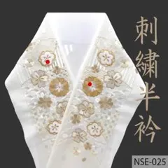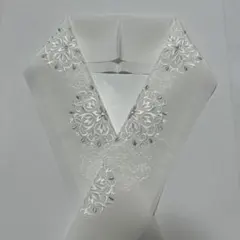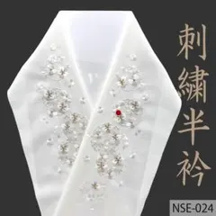 【新品】 刺繍半衿 半襟 ちりめん生地 振袖 クリスタルガラス付き 白地/白・金