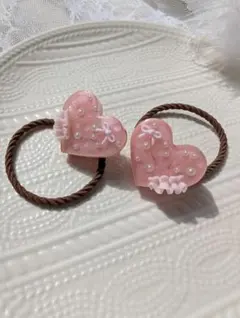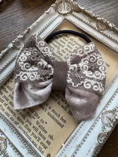 ワインレッドの細リボン2本、ベージュの細リボン2本使用。