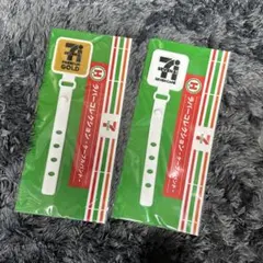 セブンイレブンのプレミアムゴールドキーホルダーとロゴデザインのラバーバンドのセット。