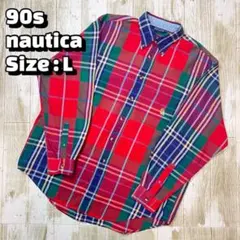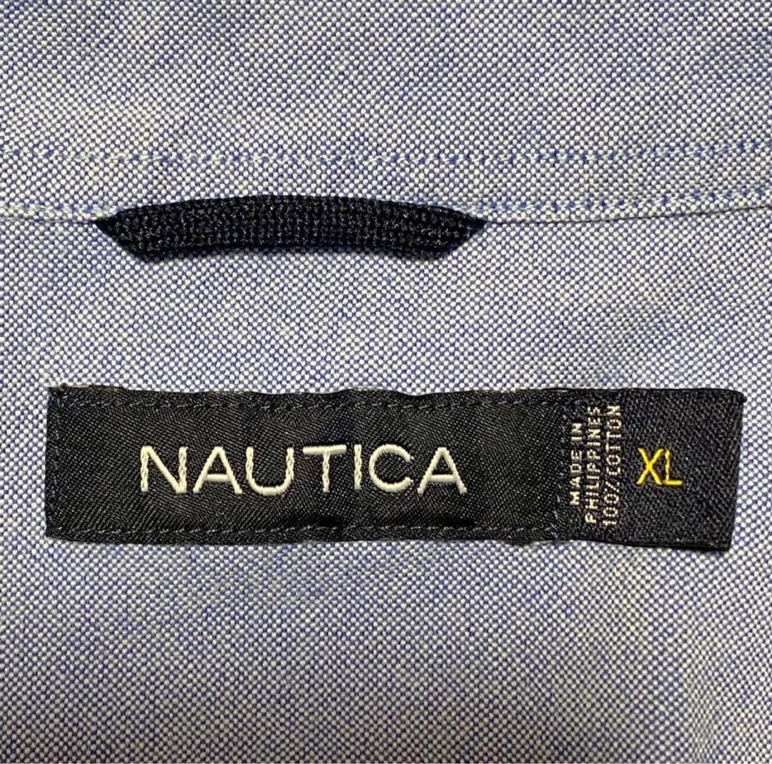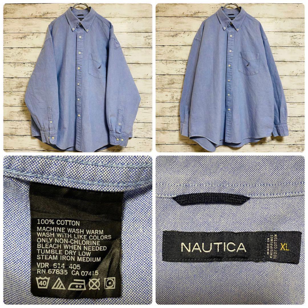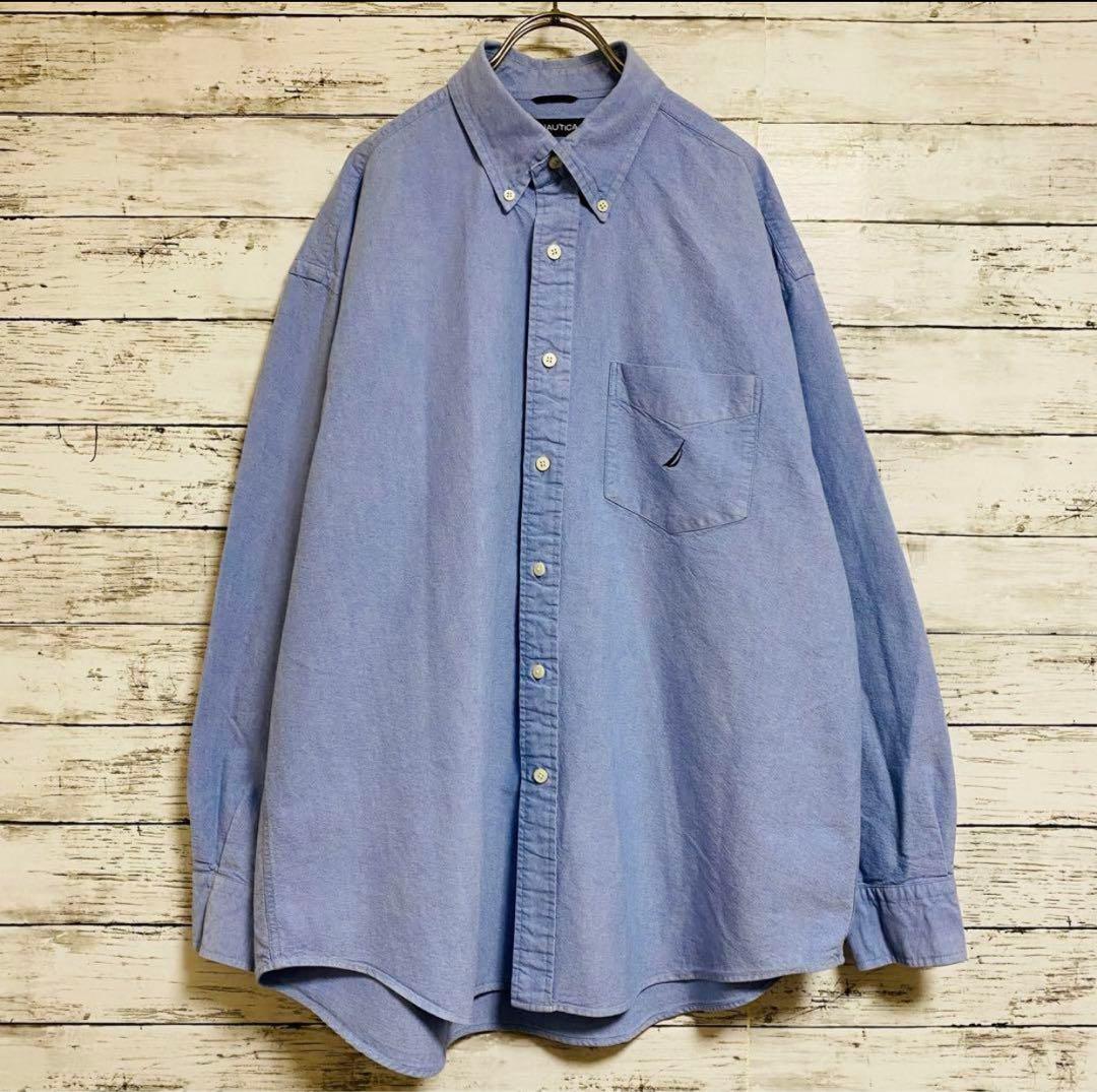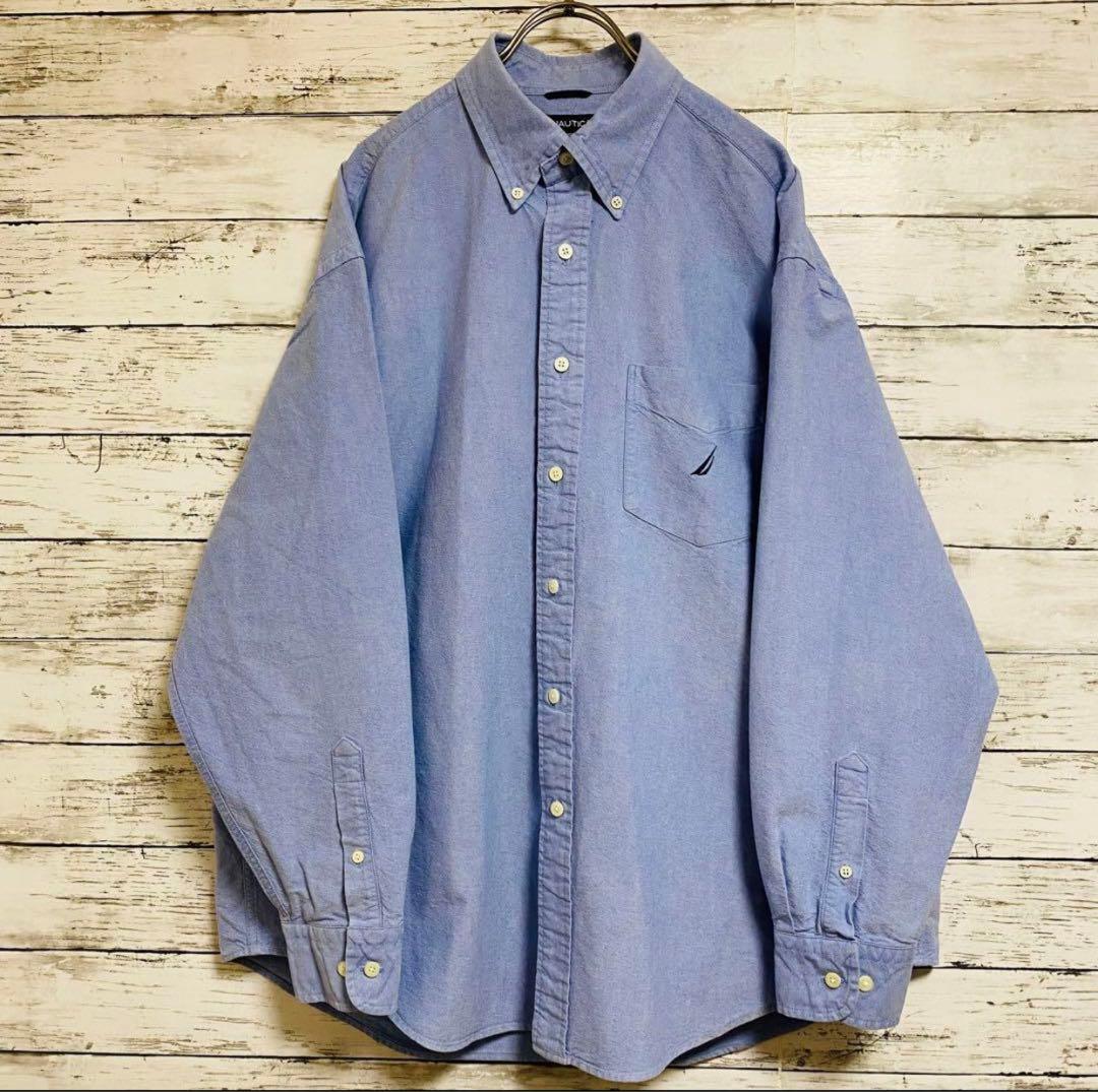 【NAUTICA ノーティカ ネイビー US 青シャツ 刺繍 ビッグサイズ 船 ビッグシルエット】