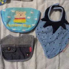 ベビー用のスタイ9枚セットです。新幹線柄、くま柄、ドット柄など、様々なデザインが含まれています。洗い替えに便利な枚数で、普段使いにぴったりです。