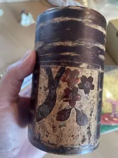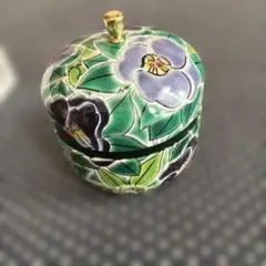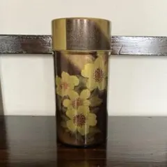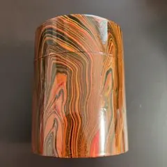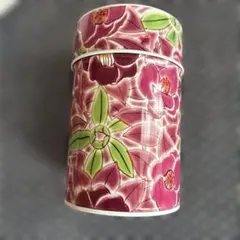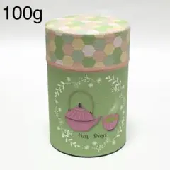 美しい金色の模様が施された緑色の茶筒、吟撰銘茶 上煎茶用。