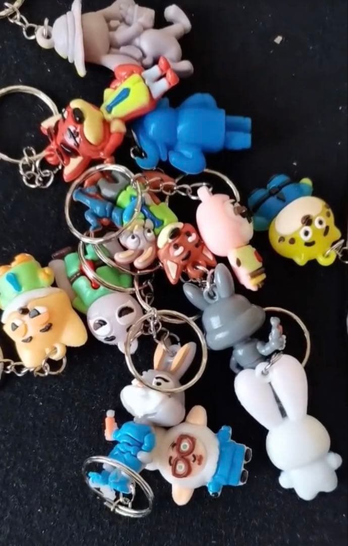 カラフルなアニメキャラクターのプラスチック製キーホルダーセット。