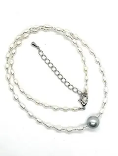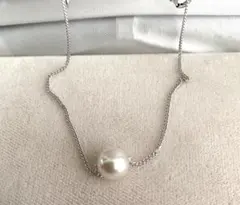 テリがよく巻きが厚いアコヤ真珠の一粒ネックレスです。チェーン部分がオリジナルのホワイトゴールド箔ベネチアンガラスパーツなのでネックラインが綺麗に出て絡まずお使いいただけます。