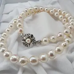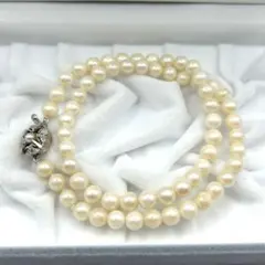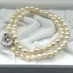 【アコヤ真珠】本真珠丸形パールネックレス 越物真珠 K18金WG箔ネックレス テリ強 厚巻き ラウンドネックライン 箱 ギフトボックス付き 入手困難 超希少