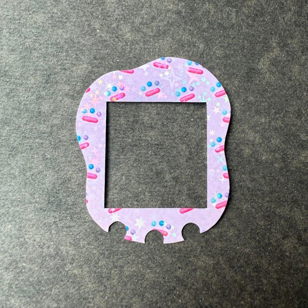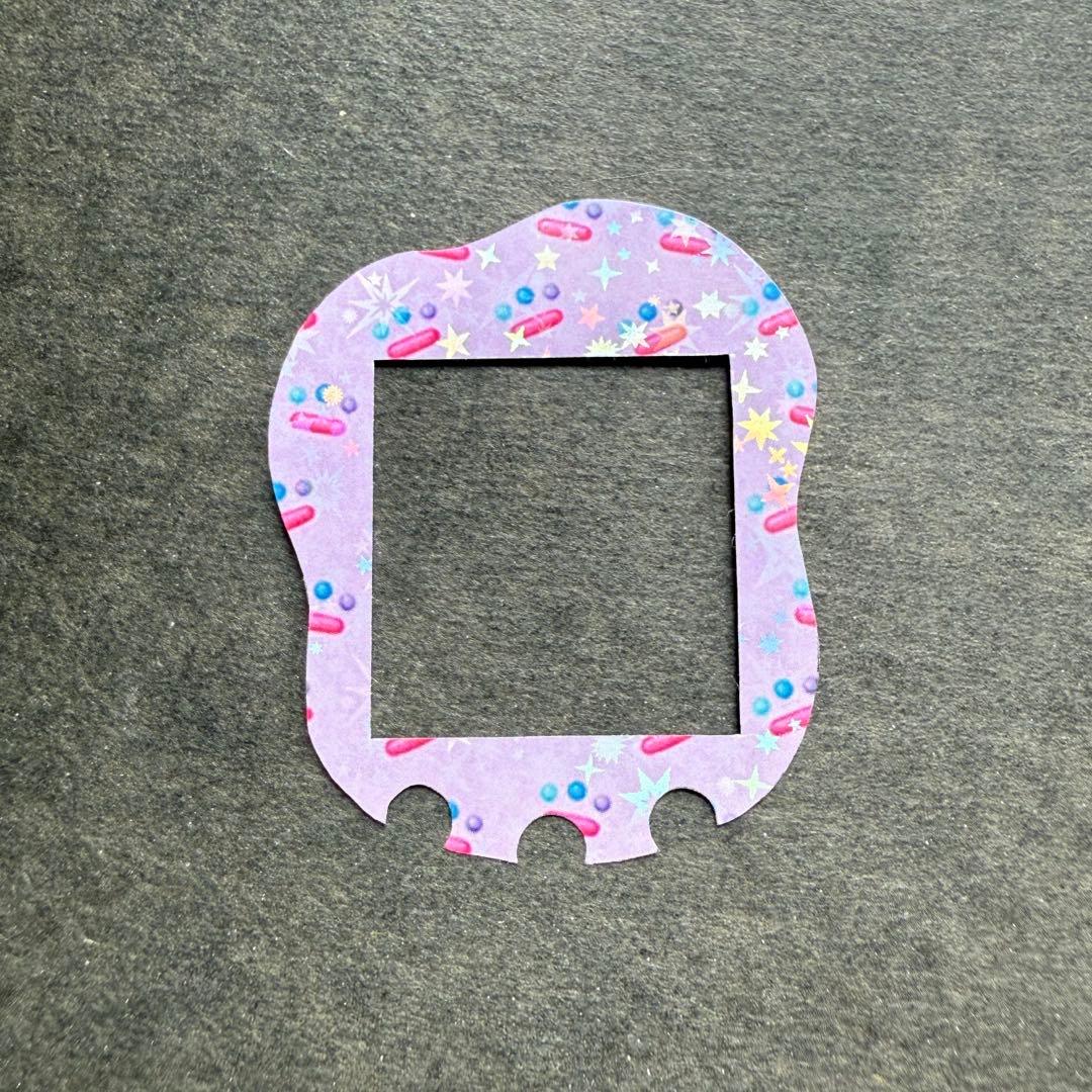 ホログラムを貼っているのでツヤツヤで角度によってキラキラします。シールタイプではありません。表面のプラスチックのカバーを外して中に入れるタイプです。色々な柄を着せ替えてオリジナルのたまごっちを楽しんで下さい。