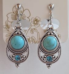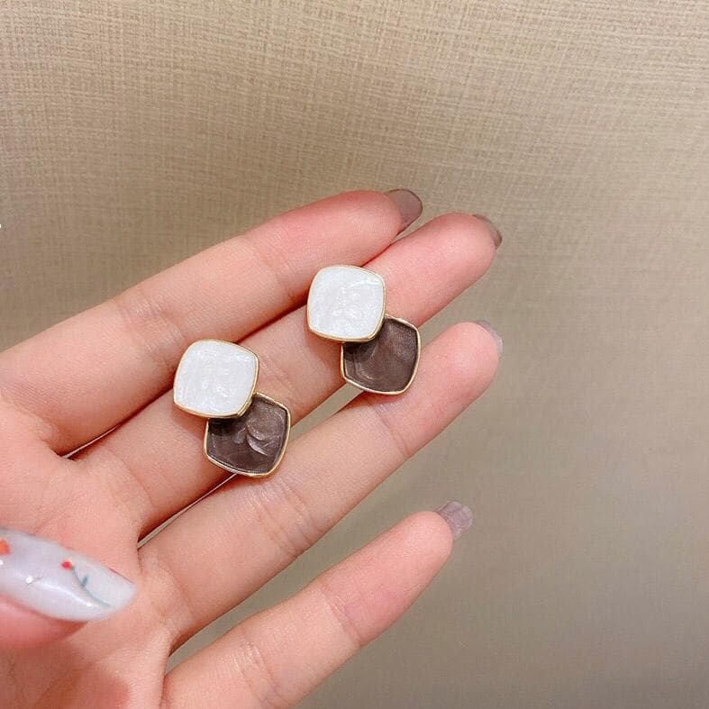 イヤリング ダイヤ形 ひし形 2連 シンプル ブラウン シリコンパッド付き クリップ式 両耳