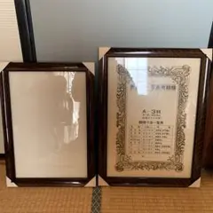 装飾的な彫刻が施された木製額縁、金色と茶色のコンビネーションで大きめのサイズ。