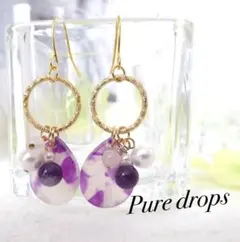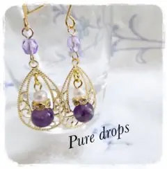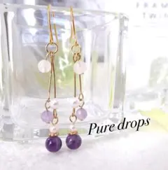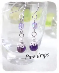 2月の誕生石のアメジストとニュアンスパープルのチェコドロップビーズをシンプルなピアスに仕上げました♪