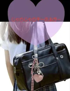 ハート型の合成皮革キーホルダー、カジュアルなデザインで複数のストラップが特徴。