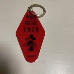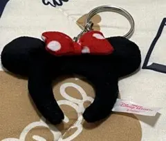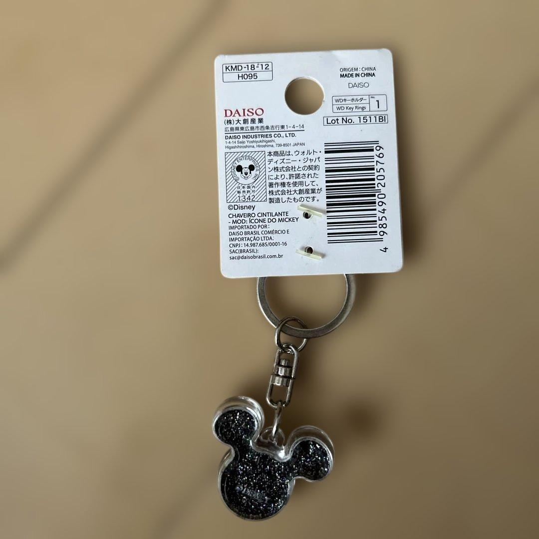 ミッキーマウスのデザインが特徴的なブラックのキーホルダー。