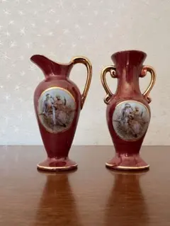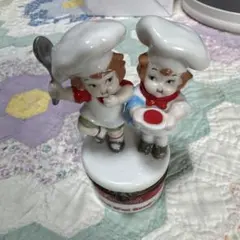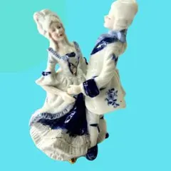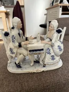 陶器置物 cdc 人形置物 花を摘みながらお散歩する貴族の男女
