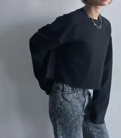 パープルのプリント入りスウェット、PAGEBOY製。