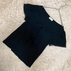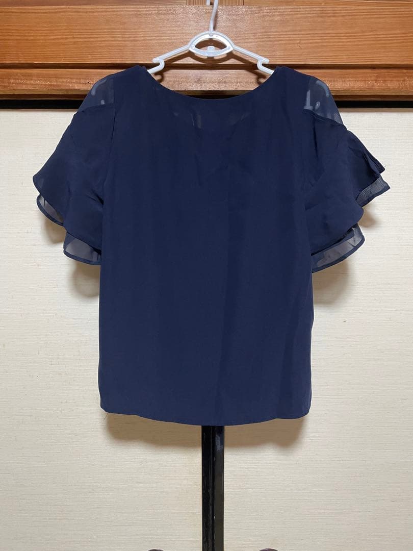 ネイビー フリル袖ブラウス Lサイズ