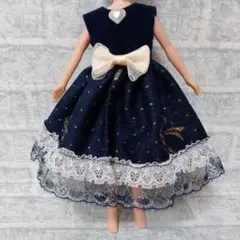黒と白の長袖ドレス、特徴的な大きな襟付き
