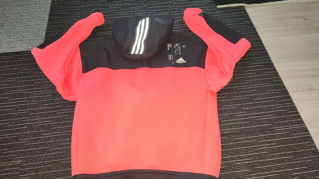 艶やかなピンクカラーが特徴のadidasフード付きパーカー。デザインもかっこいいです。あまり着ていない美品です。