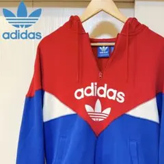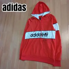 美品adidas フード アディダス ハーフジップパーカー L
