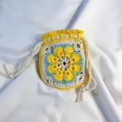 手編みグラニースクエア巾着袋
