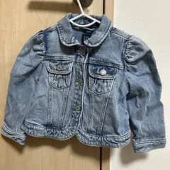 このジャケットは、可愛らしい耳付きフードが特徴で、赤ちゃんにぴったりのデザインです。スナップボタン留めで着脱も簡単です。
