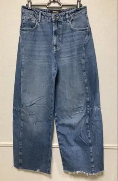 平置きで、ウエスト約39㎝、股上前約22㎝、股上うしろ約33㎝、股下約67㎝、裾幅約15.5㎝です。