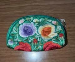 花柄刺繍 ポーチ 緑...