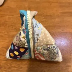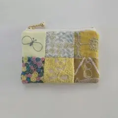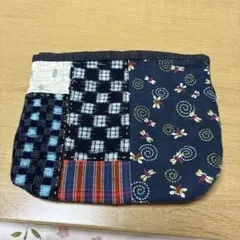 パッチワークハンドメイドの小型ポーチ。