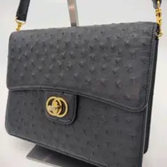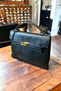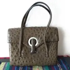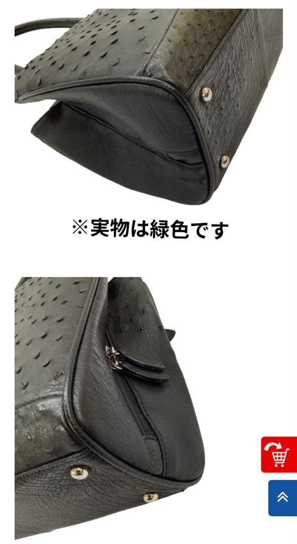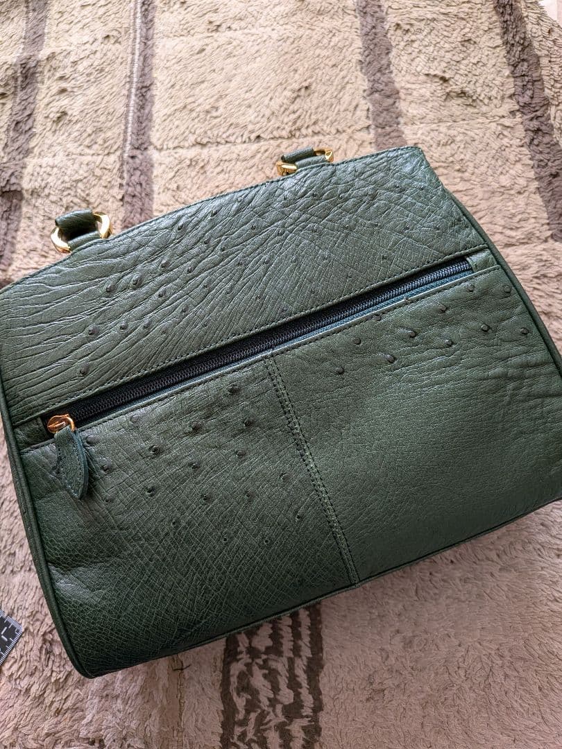 合成皮革製の緑色ボックス型オーストリッチのハンドバッグ