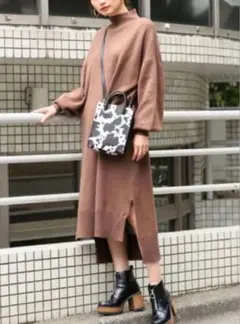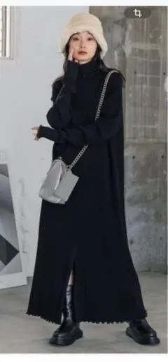 JEANASIS☆ハイツイストコットンハーフZIPニットロングワンピース
