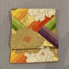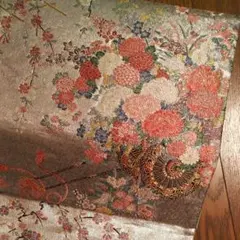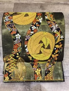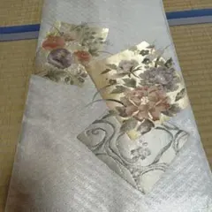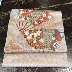 正絹 袋帯 道長扇面草花文