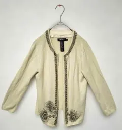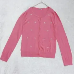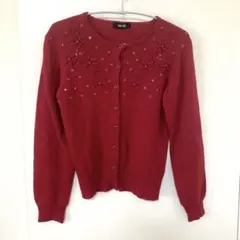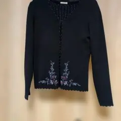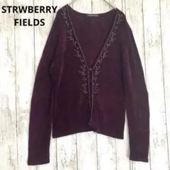 シルクとカシミヤの柔らかい素材で、パープルの長袖カーディガン ビーズ刺繍