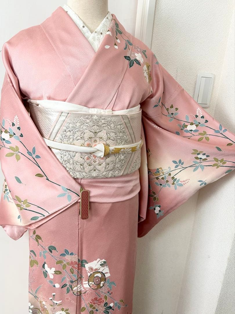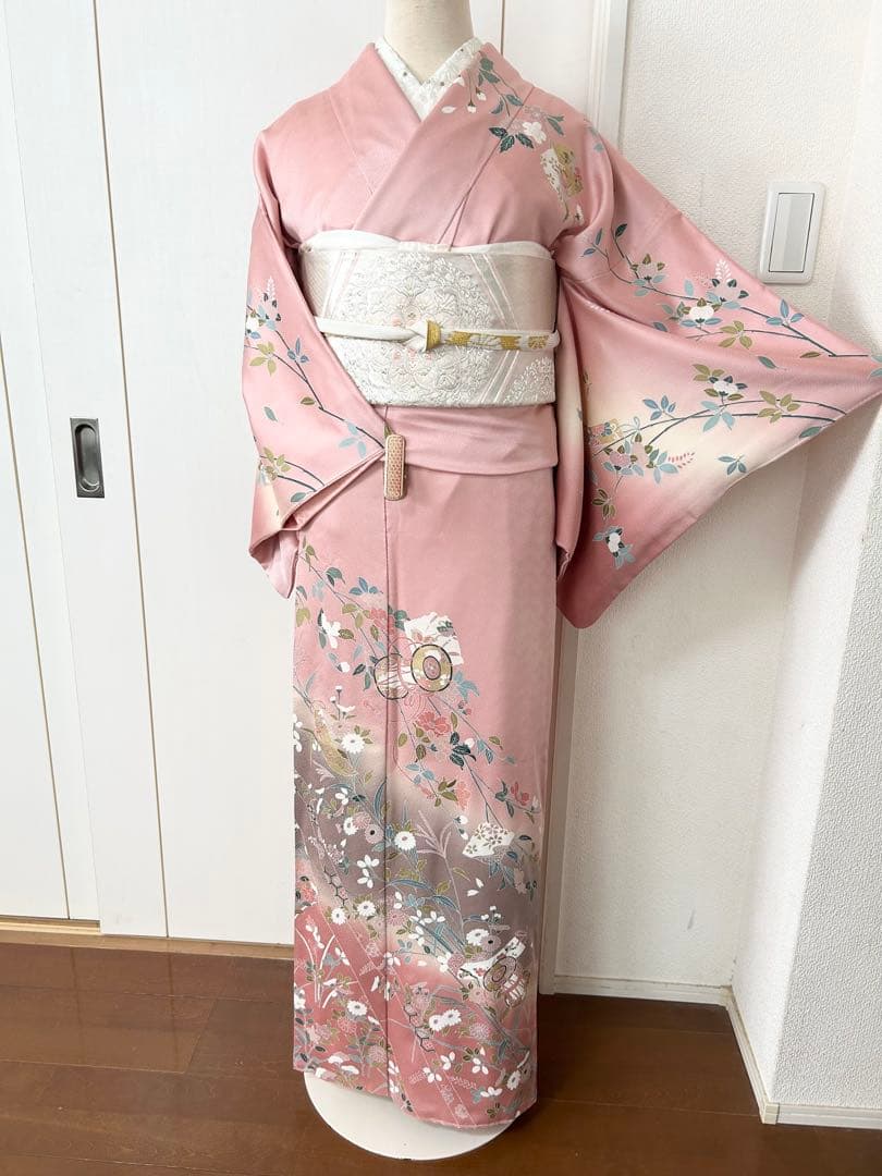 とても素敵な正絹訪問着、訪問着に合わせた袋帯、帯締め、帯揚げ4点セットです!