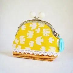 花柄メッシュ がま口バッグ ポーチ金色ネットラメ入り