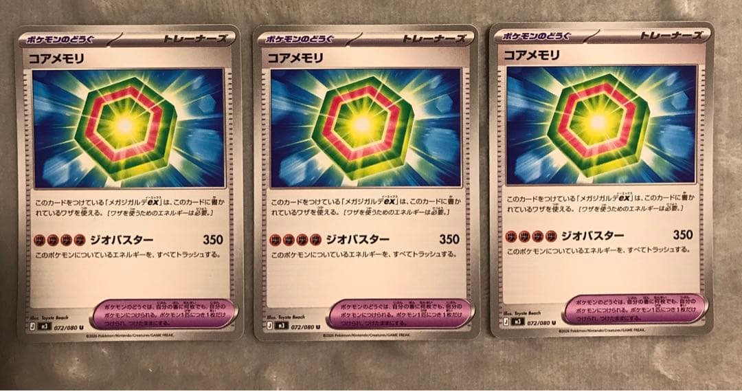 トレーナーカード「コアメモリ」の3枚セット。350ダメージの効果を持つ。