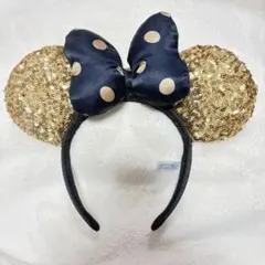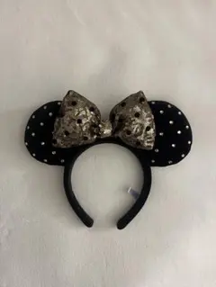 ミニーマウスの紫色の水玉リボンカチューシャ。