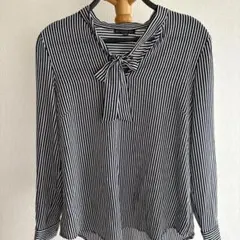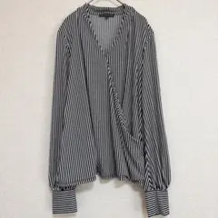 #ADRIANNAPAPELL #アドリアナパペル #カシュクール #ブラウス #ストライプ #縦縞 #モノトーン #Vネック #ストレッチ #オフィス #通勤 #カジュアル #エレガント