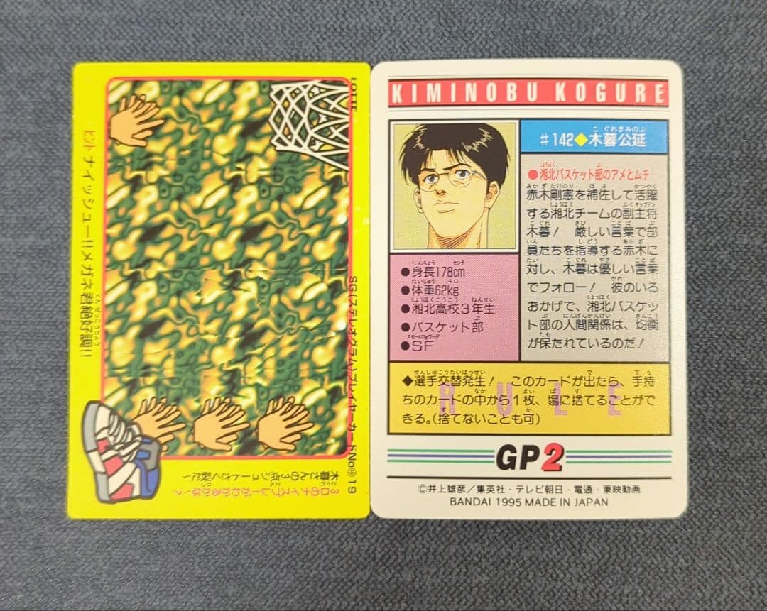 スラムダンクカード 木暮公延 No.19 ロッテカード SGステレオグラムプレイヤーカード、No.142 カードダス SLAMDUNK