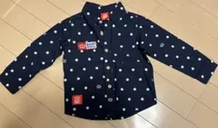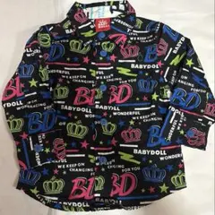 デニム素材のBABY DOLL長袖シャツ、サイズ90、背面に大きなプリントあり。