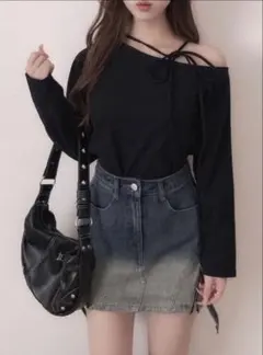 新品 グレイル GRL リボンワンショルテレコリブトップス[gn310]