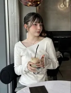 リブ編みの素材が身体に美しくフィットし、スタイルを強調してくれるトップス。