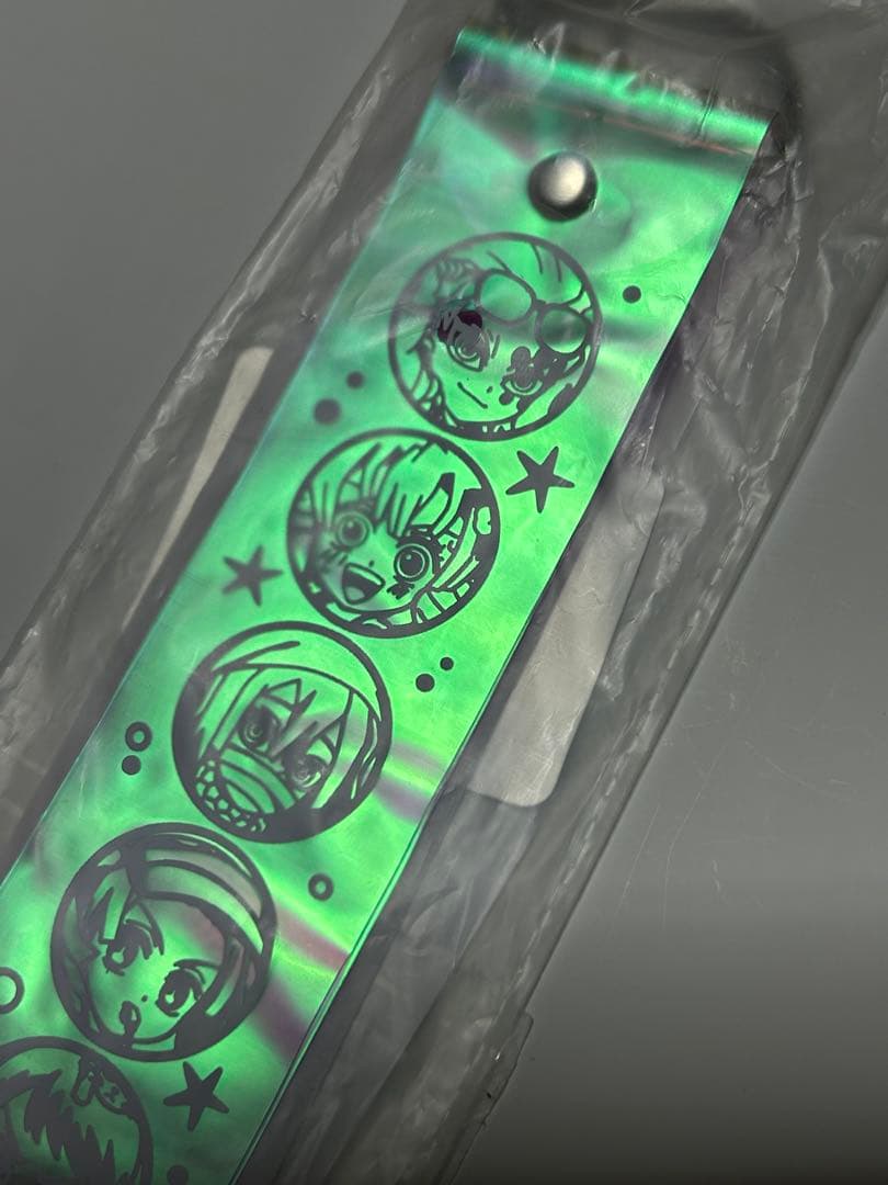 ホログラム仕上げのキャラクターイラストが施されたスマホストラップ