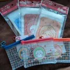 ちいかわキャンドゥ5点ジッパー袋メモ帳ボールペンラバーヘアゴムミニメッシュポーチ