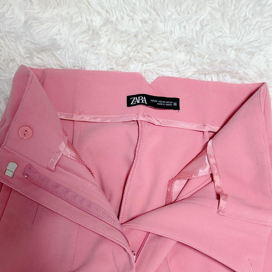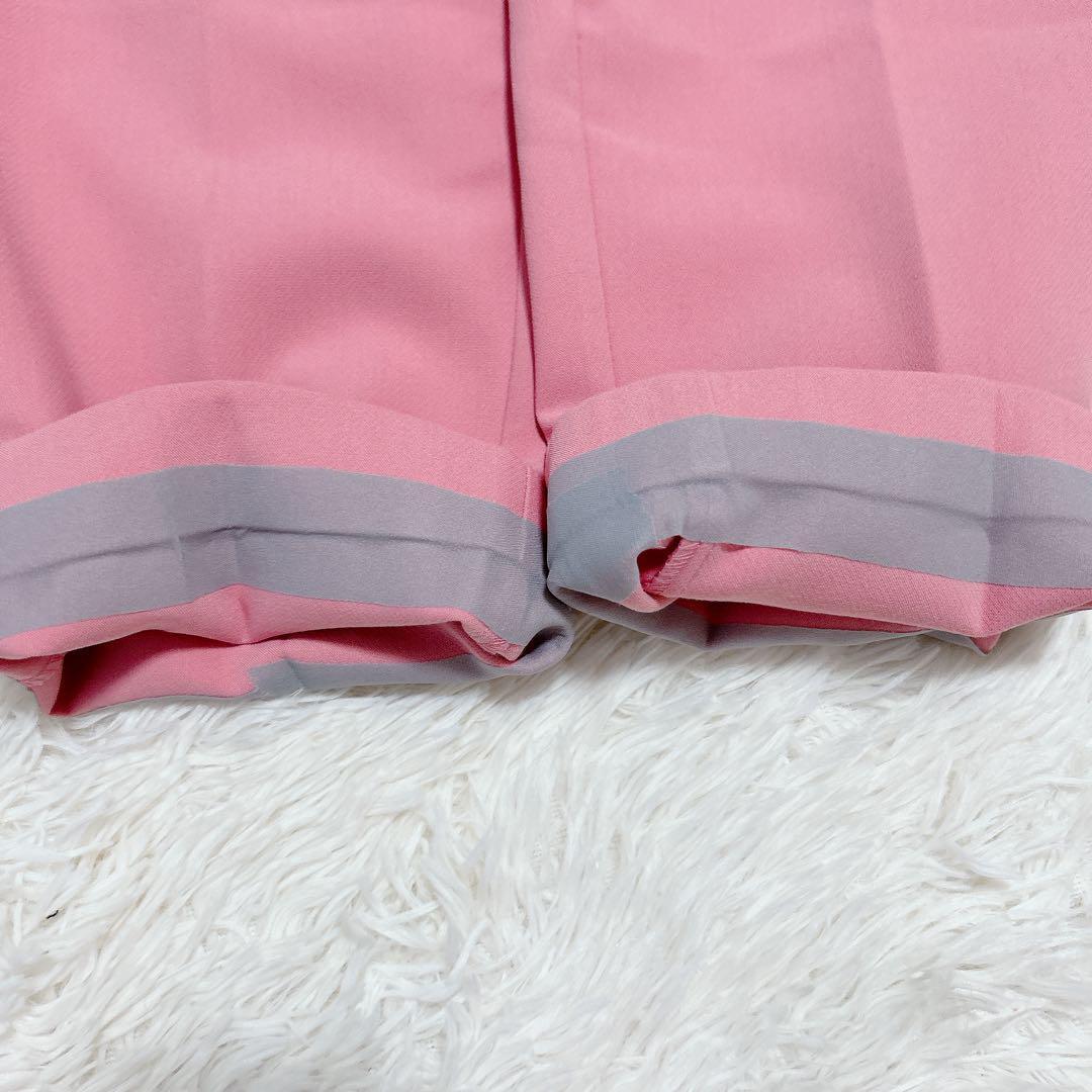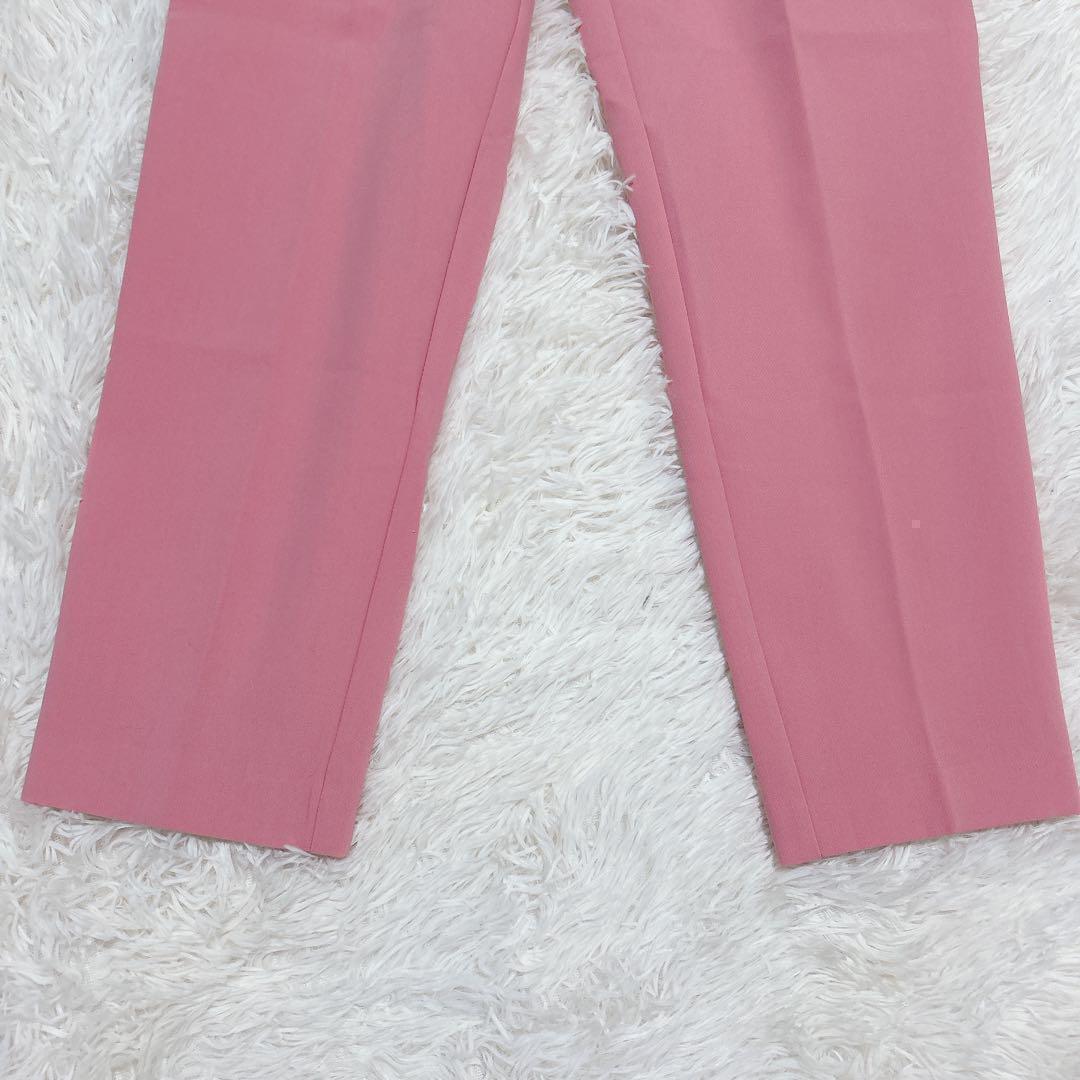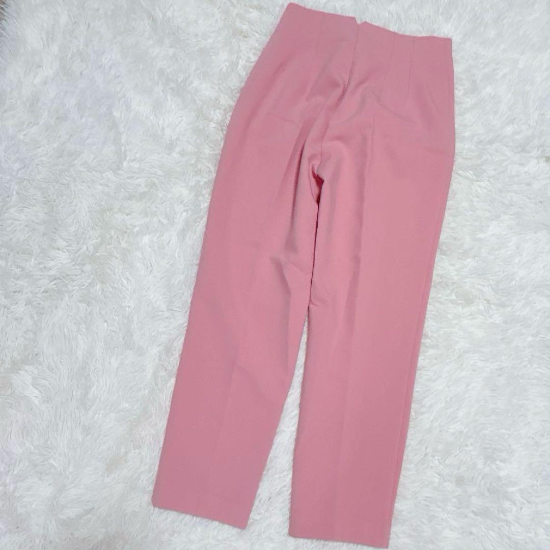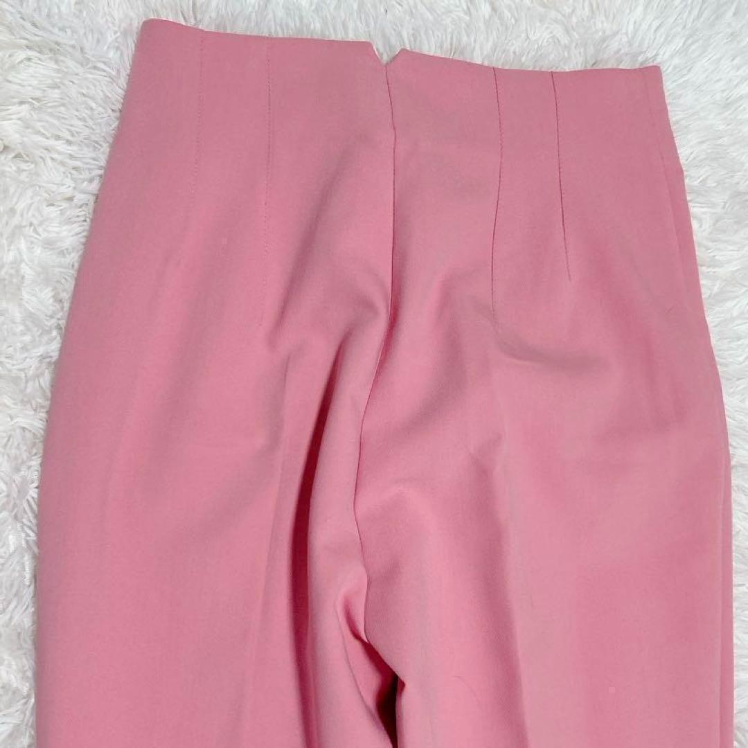 ハイウエストデザインのピンクスラックス。