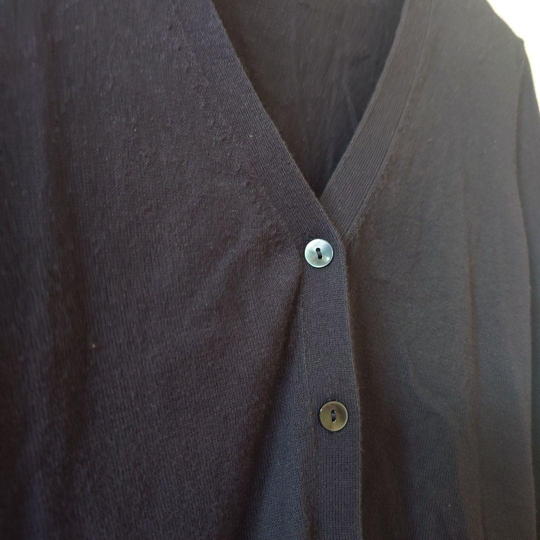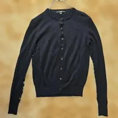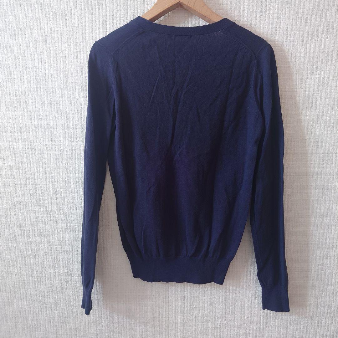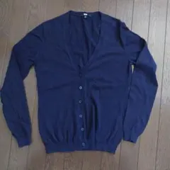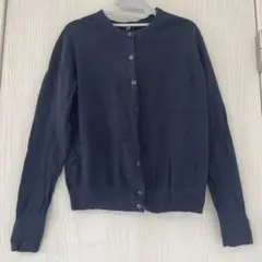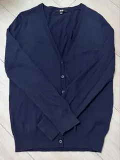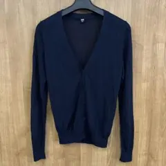 シンプルなネイビーの長袖カーディガン、Sサイズ、ボタン付きデザイン。Vネック。