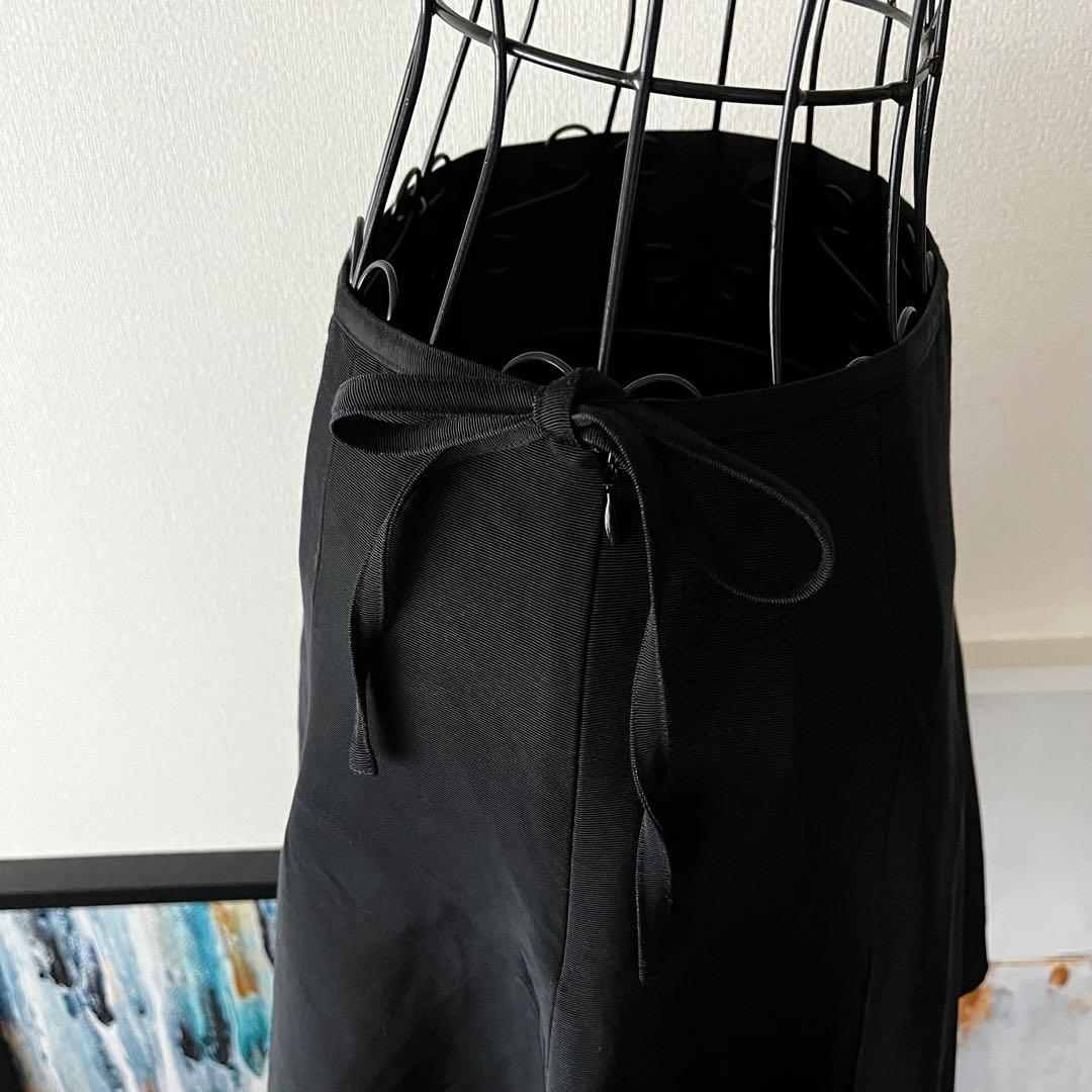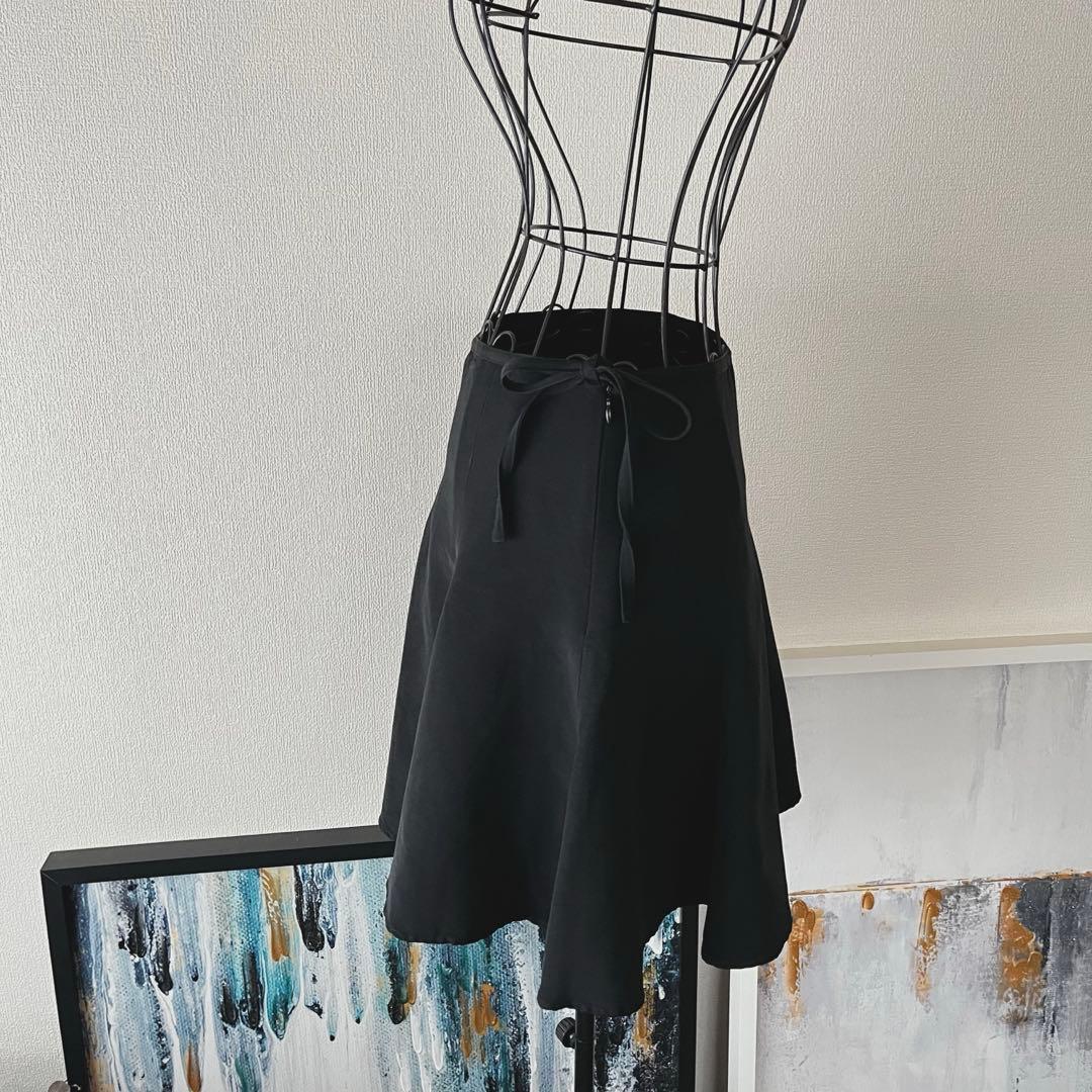 黒の裾フレアのミニスカートになります。