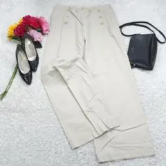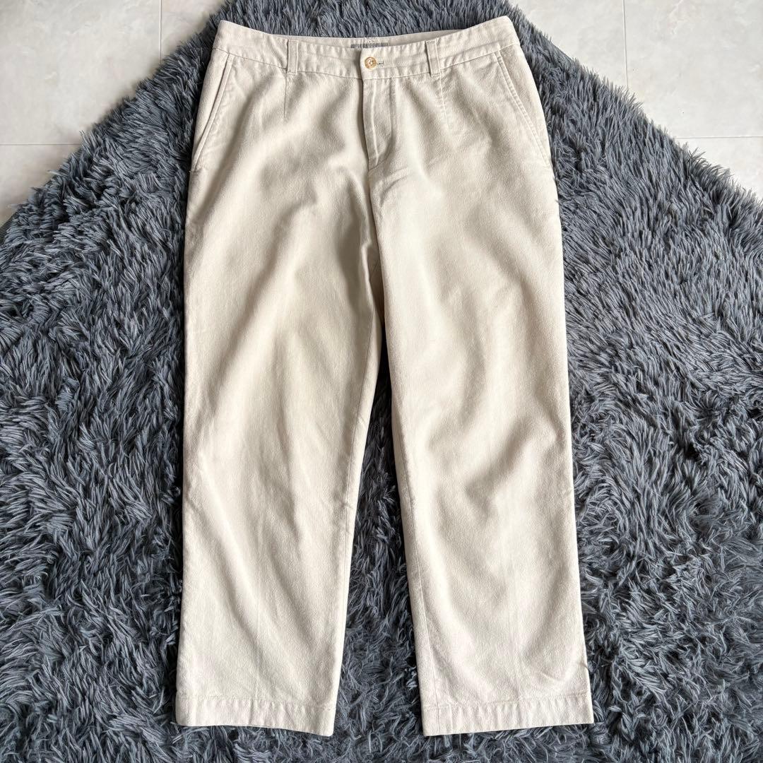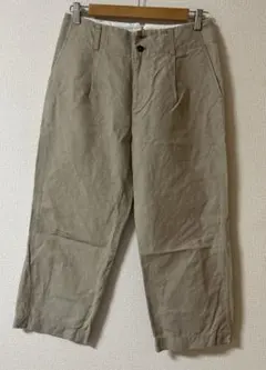 マーガレットハウエルらしい、上品でやわらかな雰囲気が魅力のコットンウールパンツです。やさしいベージュカラーとすっきり見えるシルエットで、きれいめにもナチュラルにも合わせやすい一着です。